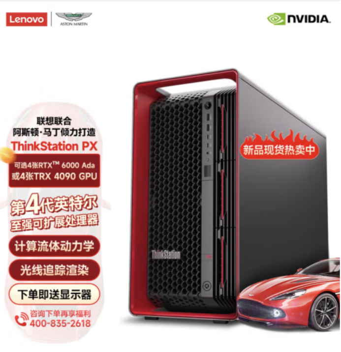 史詩級散熱設(shè)計,顛覆性技術(shù)革新!今年3月,聯(lián)想發(fā)布有史以來最具技術(shù)突破性的臺式工作站——ThinkStation PX,全面滿足工程師、創(chuàng)意工作者和數(shù)學科學家對強算力、高性能、快速運行的進一步需求。其采用了由聯(lián)想與豪華跑車制造商阿斯頓馬丁共同打造的全新空氣動力學散熱設(shè)計機箱,為各行各業(yè)高強度工作注入澎湃算力支持。聯(lián)想ThinkStation PX是業(yè)界獨家可以支持兩顆頂級350W至強處理器加四塊300W頂級專業(yè)顯卡的工作站產(chǎn)品,做到了當前桌面工作站的性能極致,帶來史詩級澎湃的性能釋放,可以幫助用戶輕松應(yīng)對復(fù)雜工作流。最多可搭載4TB DDR5內(nèi)存,通過PCIe Gen 5高速通道提供超高帶寬,還可提供高效的1850W電源和可選冗余電源。