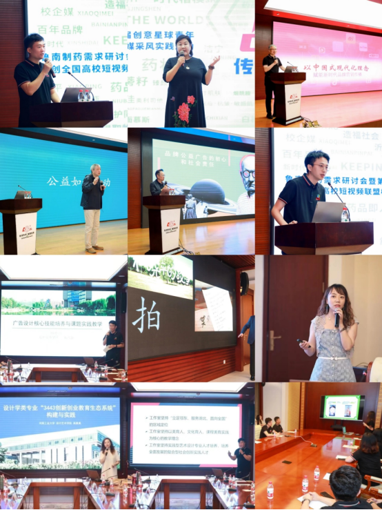 現(xiàn)場,湖北師范大學(xué)蔣達老師、山東工藝美術(shù)學(xué)院創(chuàng)新創(chuàng)業(yè)學(xué)院鄭建鵬老師、河南工業(yè)大學(xué)高雅真老師、蘇州大學(xué)劉英杰老師分別從高校美育改革與教學(xué)實踐創(chuàng)新、廣告設(shè)計核心技能培養(yǎng)、導(dǎo)師工作室教學(xué)培養(yǎng)、短視頻制作指導(dǎo)攻略進行主題分享。來自珠??萍紝W(xué)院黃鉦皓同學(xué),圍繞“追尋自我”主題分享自己短視頻創(chuàng)作的歷程。