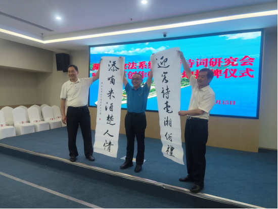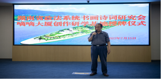 詩(shī)以言志,文以化人。以法護(hù)商,以商促文。7月15日上午,坐落于長(zhǎng)沙市芙蓉區(qū)“中央文化區(qū)”的嘀嘀大廈五樓會(huì)議室高朋滿座,熱鬧非凡?!昂鲜≌ㄎ幕粥执髲B創(chuàng)研基地”簽約暨掛牌儀式在此隆重舉行。省政法系統(tǒng)書(shū)畫(huà)詩(shī)詞研究會(huì)主席團(tuán)成員彭對(duì)喜,副會(huì)長(zhǎng)劉慶富;詩(shī)詞分會(huì)主席陳嶺及副主席賀曦、周加良、江世炎;書(shū)法分會(huì)主席陳祥松、副主席吳若順;長(zhǎng)沙法官文聯(lián)副主席胡軍軍等領(lǐng)導(dǎo)和嘉賓出席活動(dòng)。