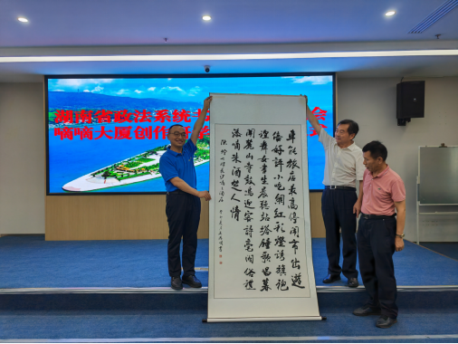 “全面建設(shè)社會(huì)主義現(xiàn)代化國(guó)家,必須堅(jiān)持中國(guó)特色社會(huì)主義文化發(fā)展道路,增強(qiáng)文化自信。文化是民族之根。應(yīng)該讀好‘兩本書(shū)’,一本是有字的經(jīng)典之書(shū),一本是無(wú)字的實(shí)踐之書(shū)。嘀嘀大廈緊鄰長(zhǎng)沙火車(chē)站,來(lái)往交通方便,文化氣息濃厚,在長(zhǎng)沙法官文聯(lián)學(xué)雷鋒書(shū)畫(huà)工作站的基礎(chǔ)上,進(jìn)一步成立政法文化創(chuàng)作研學(xué)基地,開(kāi)展各種有意義的詩(shī)詞書(shū)畫(huà)文藝活動(dòng),可以助力實(shí)現(xiàn)‘以文興商、以商促文’的雙贏目的,為建設(shè)社會(huì)主義文化強(qiáng)國(guó)貢獻(xiàn)出我們應(yīng)有的心智和力量。這樣的政法文化創(chuàng)作研學(xué)基地多多益善?!迸韺?duì)喜對(duì)活動(dòng)給予高度肯定。
