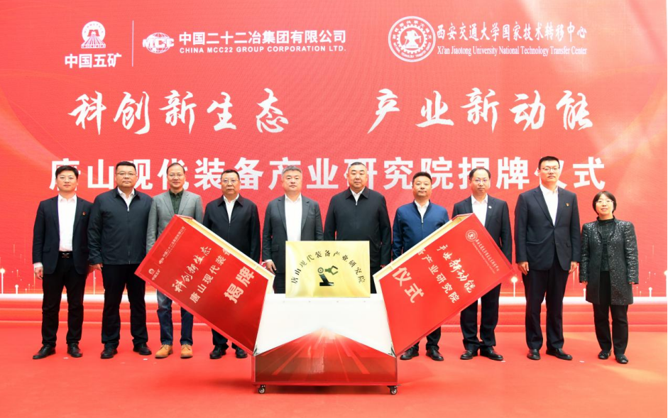 4月18日上午,中國(guó)二十二冶集團(tuán)與西安交通大學(xué)共同聯(lián)合創(chuàng)建的唐山現(xiàn)代裝備產(chǎn)業(yè)研究院揭牌儀式在中國(guó)二十二冶中冶重工唐山公司舉行。唐山市工業(yè)和信息化局副局長(zhǎng)賀川、高新區(qū)管委會(huì)副主任武昌明,西安交通大學(xué)國(guó)家技術(shù)轉(zhuǎn)移中心主任王文,中國(guó)二十二冶集團(tuán)有限公司副總經(jīng)理韓冰出席活動(dòng),賀川、武昌明致賀詞,賀川、武昌明、王文、韓冰為唐山現(xiàn)代裝備產(chǎn)業(yè)研究院揭牌。中國(guó)二十二冶集團(tuán)有限公司副總工程師慈國(guó)強(qiáng)主持會(huì)議。