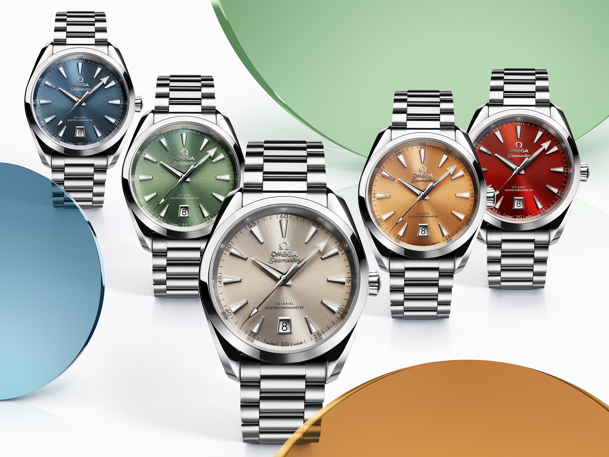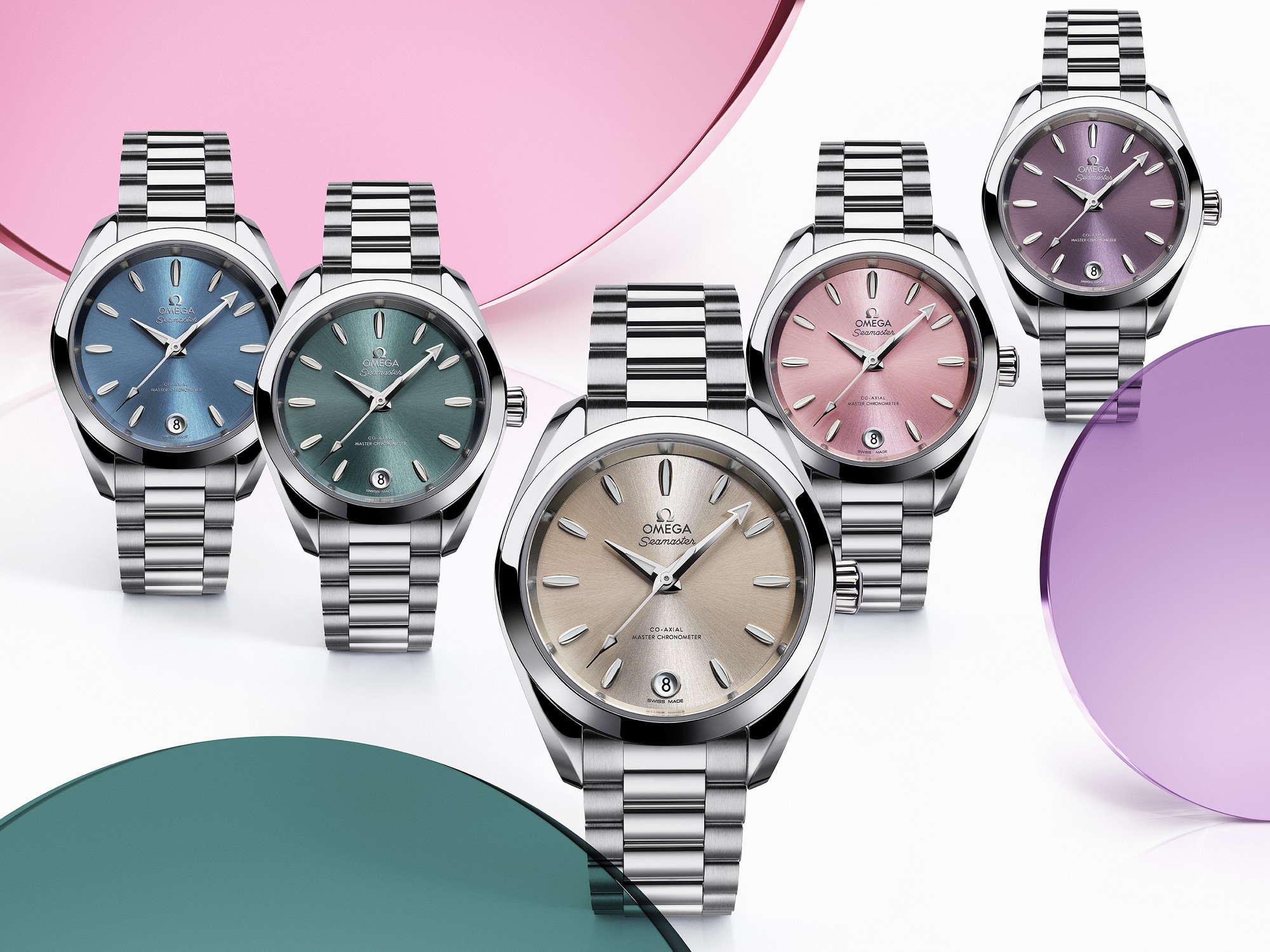 對于表迷來說,此次新出的 Aqua Terra Shades 腕表有34毫米和38毫米兩種尺寸可供選擇,對應了男女的不同需求。最為引人矚目的還是靈感來自海洋和陸地的彩色表盤,如38毫米表款的盤面有深藍色、月桂綠色、砂巖色、橘黃色和赤陶色;34毫米表款則有海藍色、湖綠色、砂巖色、貝殼粉色和薰衣草紫色表盤可選,不同的色彩表現出佩戴著不同的個性與風格。