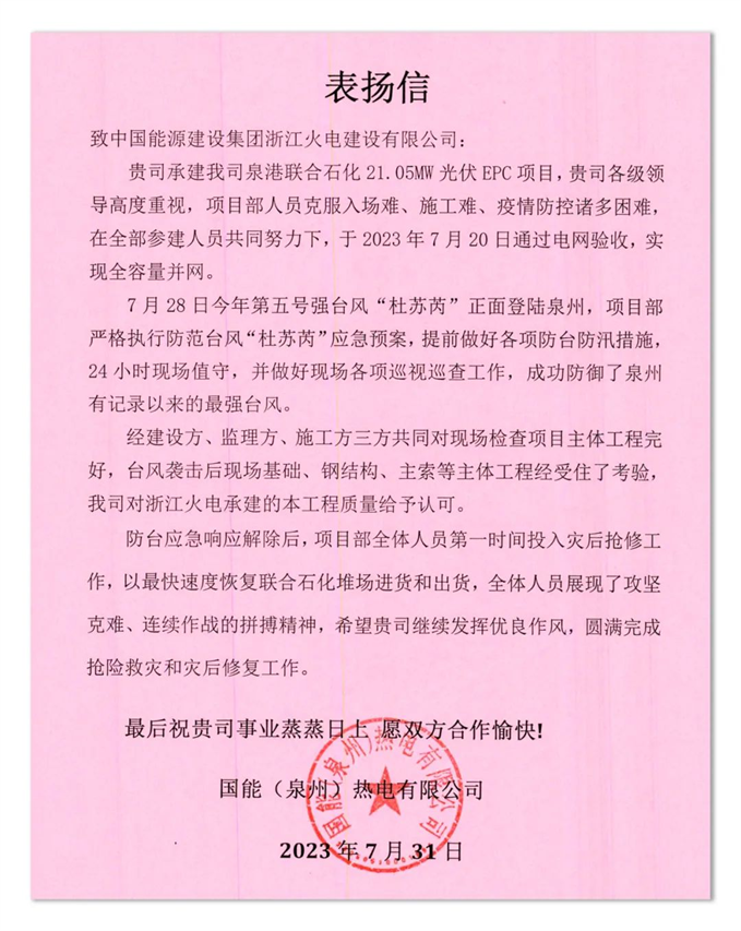 本次遭遇超強(qiáng)臺(tái)風(fēng)“杜蘇芮”,是泉港聯(lián)合石化光伏EPC項(xiàng)目從建設(shè)到并網(wǎng)以來(lái)經(jīng)歷的最嚴(yán)苛的挑戰(zhàn);也是索結(jié)構(gòu)柔性光伏支架系統(tǒng)在實(shí)際建設(shè)項(xiàng)目中遇到的最強(qiáng)自然風(fēng)暴。從某個(gè)角度講,索結(jié)構(gòu)柔性光伏支架系統(tǒng)以實(shí)際建設(shè)標(biāo)準(zhǔn),在自然環(huán)境下經(jīng)受了一次非模擬狀態(tài)的“風(fēng)洞試驗(yàn)”。