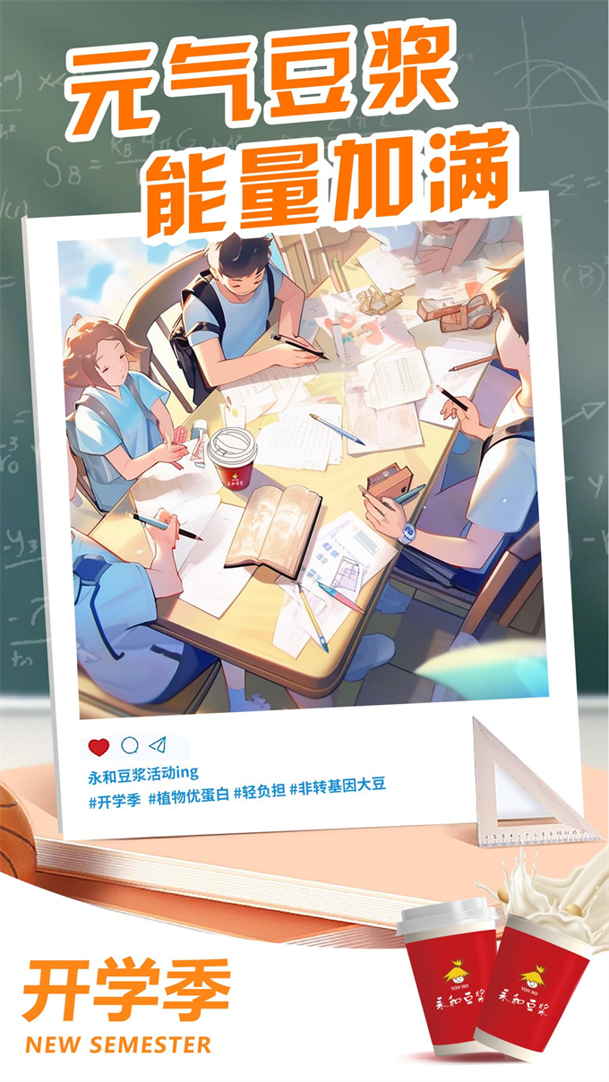 打造開學(xué)好狀態(tài),從永和豆?jié){開始。多元營(yíng)養(yǎng)國(guó)際品質(zhì),讓家長(zhǎng)更放心。新學(xué)期一起活力滿滿向前沖!